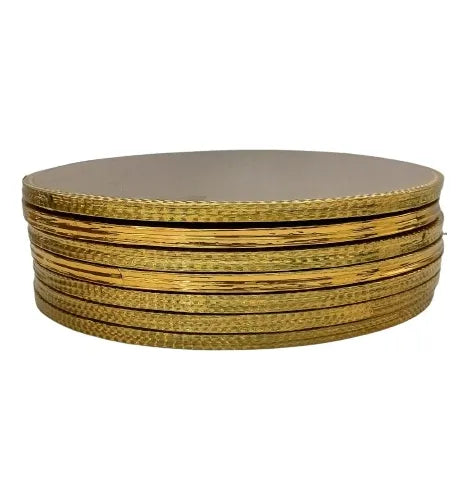 La Base Doble Listón Dorado es un accesorio ideal para presentar tus pasteles en eventos especiales. Hecha de cartón resistente, su doble listón en color dorado le da un toque de elegancia y sofisticación. Añade un toque de clase a tus presentaciones con esta base duradera y práctica.